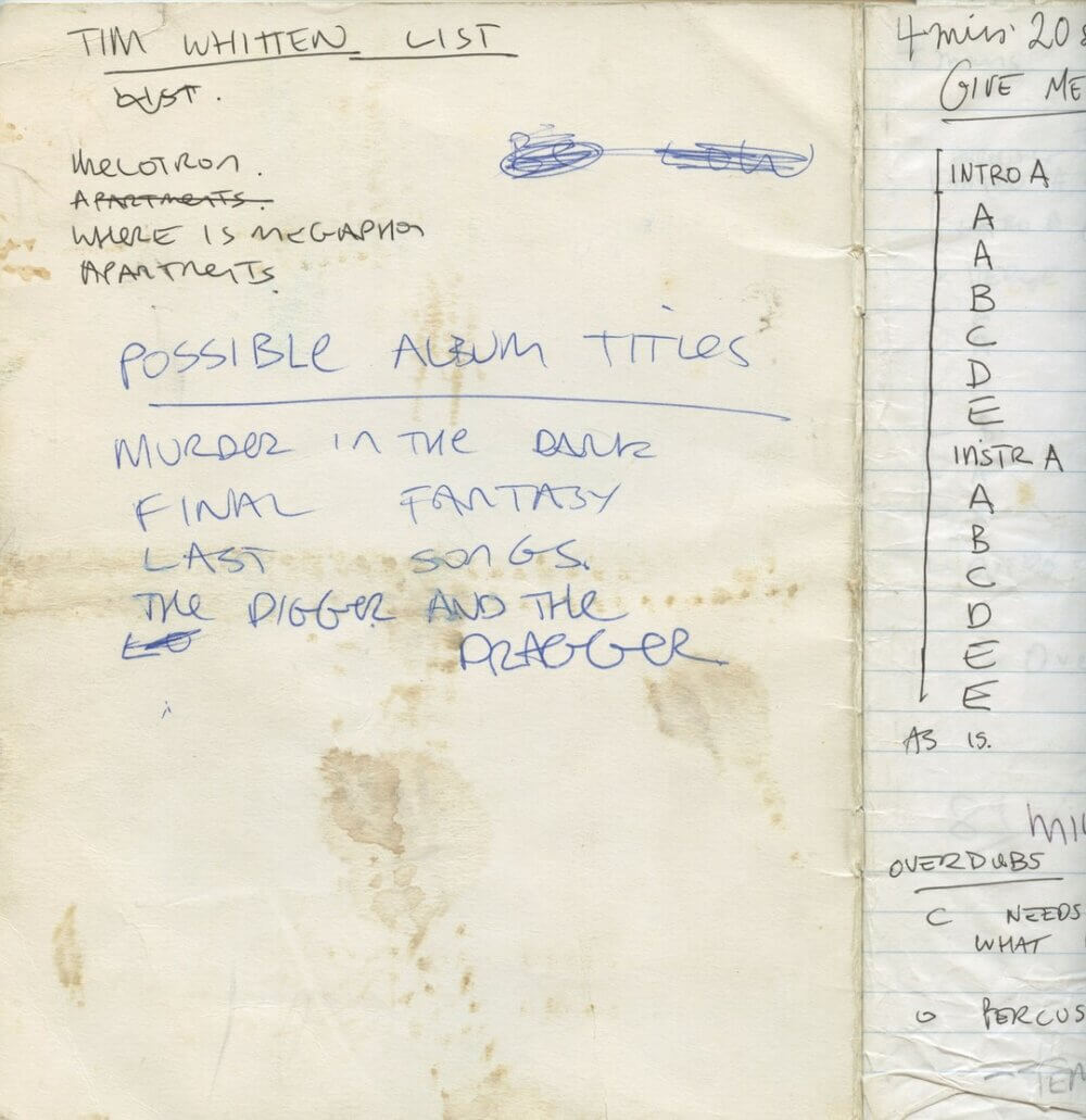 At one point I was having difficulty pitching my voice while wearing headphones. Tim sympathetically (and ingeniously) constructed a little speaker-on-a-stand device that played the music at a low volume from around a metre away so I could sing to that, ears freed up. Most of the vocals were then done that way. I remember we had reams of paper for each song with all the overdubs listed on them, and we’d tick them off as we went. It became – ironically, given our early morning building-smashing neighbours – a very constructive and matter-of-fact way of making an album. Perhaps it was too orderly, but at the very least it tricked a confidence in the process that allowed a very nervous band to focus on getting everything we needed. And while those five days passed in a blur, I remember it being a very creatively satisfying time.